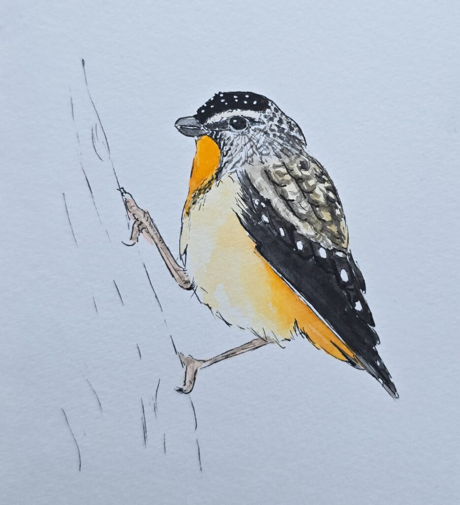 Linda has set us a challenge today by posting this beautiful rendering of that tiny bird. Never seen one “in the flesh” but I think I heard one the other day. I thought it was a Bellbird at the time, but checking ebird just now, it probably was one of these cute little creatures.